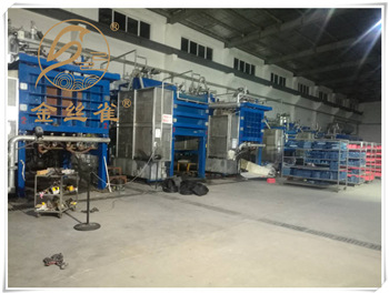 金丝雀公司引进购买全自动化EPP成型设备多台,K813、K1214、K1218、K1318、K1422等规格的机台一应俱全,全部成型设备为24台成型自动机,能满足客户产品丰富的尺寸需求。原料预压设备、能源动力设备、成品干燥房等符合国家标准,且为行业内先进。
